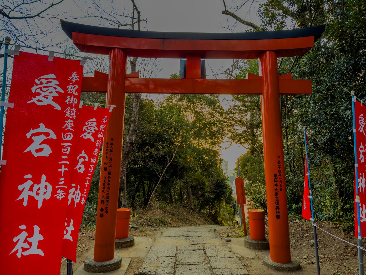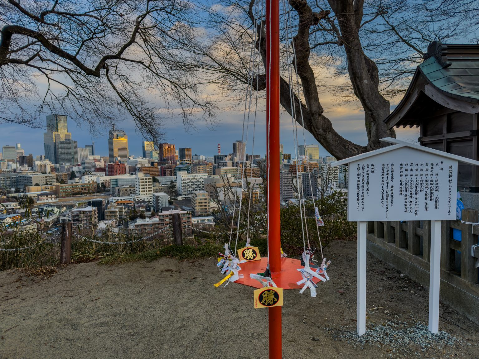 Atago Shrine (愛宕神社, Atago Jinja) ist ein traditionsreicher Shintō-Schrein im Süden von Sendai, der auf dem Atago-yama (ca. 75 m Höhe) über der Stadt liegt und vor allem wegen seiner Aussicht geschätzt wird: Von den Anlagen und den Zugangswegen bietet sich ein weiter Blick über Sendai bis in die Umgebung – bei klarer Sicht besonders eindrucksvoll.