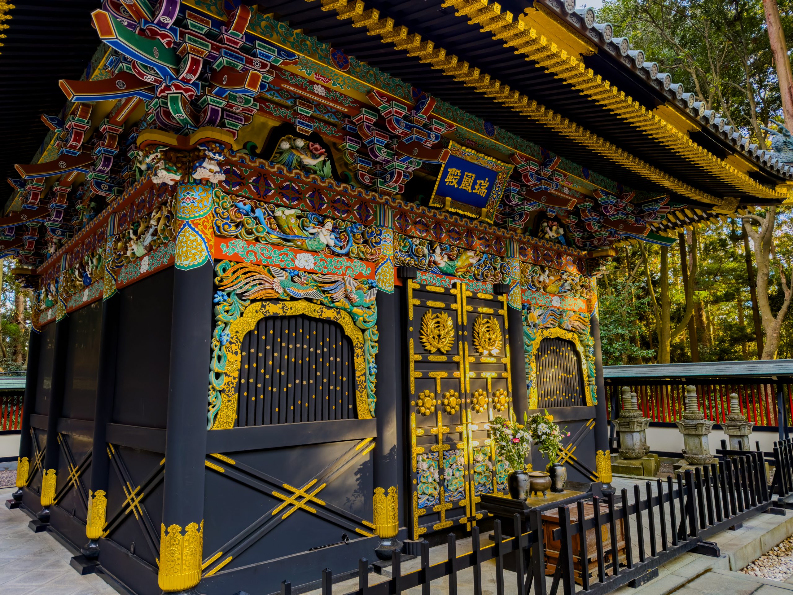 Zuihōden (瑞鳳殿) ist das bekannteste historische Mausoleum in Sendai und die Ruhestätte von Date Masamune (1567–1636), dem mächtigen Fürsten, der Sendai als Burgstadt prägte. Die Anlage liegt in einem bewaldeten Hanggebiet und wirkt trotz ihrer Nähe zum Stadtzentrum angenehm abgeschieden. Charakteristisch sind die reich verzierte Momoyama-Architektur, kräftige Farben und dekorative Holzarbeiten, die einen Eindruck vom repräsentativen Stil der frühen Edo-Zeit vermitteln.