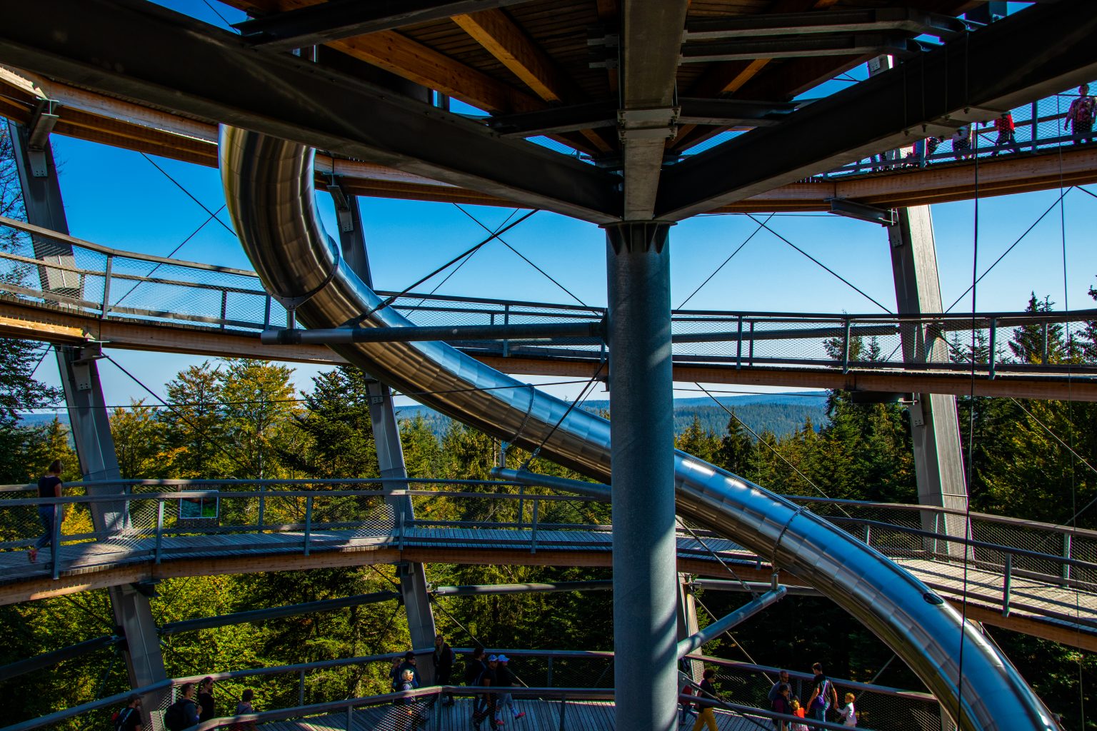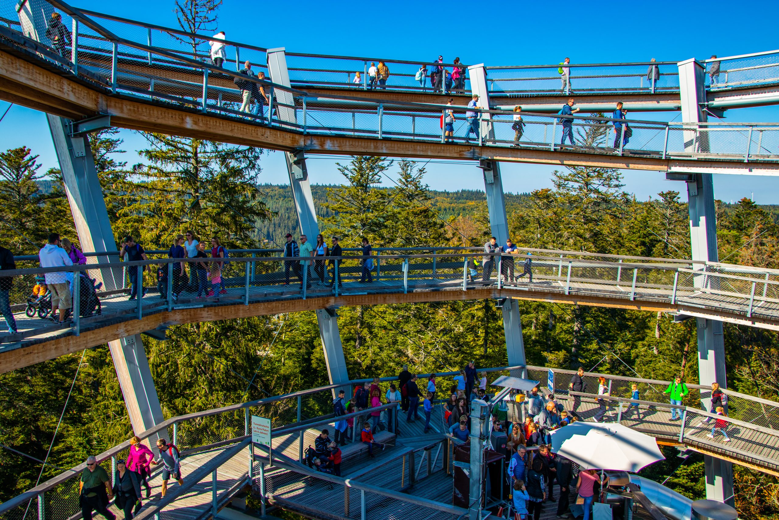 Der Sommerberg in Bad Wildbad, Baden- Württemberg, ist ein echtes Juwel für Naturliebhaber und Abenteuerlustige. Mit der Sommerbergbahn, einer nostalgischen Standseilbahn, erreicht man mühelos den Gipfel. Oben angekommen, erwartet die Besucher der Baumwipfelpfad, ein spektakulärer Höhenweg, der atemberaubende Ausblicke auf den Schwarzwald bietet. Der Pfad endet in einem 40 Meter hohen Aussichtsturm mit einer eindrucksvollen Rutsche für die Abenteurer unter euch. Der Sommerberg ist auch ein Paradies für Wanderer und Mountainbiker, mit vielen gut ausgeschilderten Wegen, die durch die dichten Wälder und über die sanften Hügel führen.